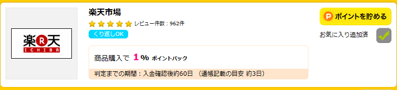 ハピタスの会員になって、楽天市場を検索すると